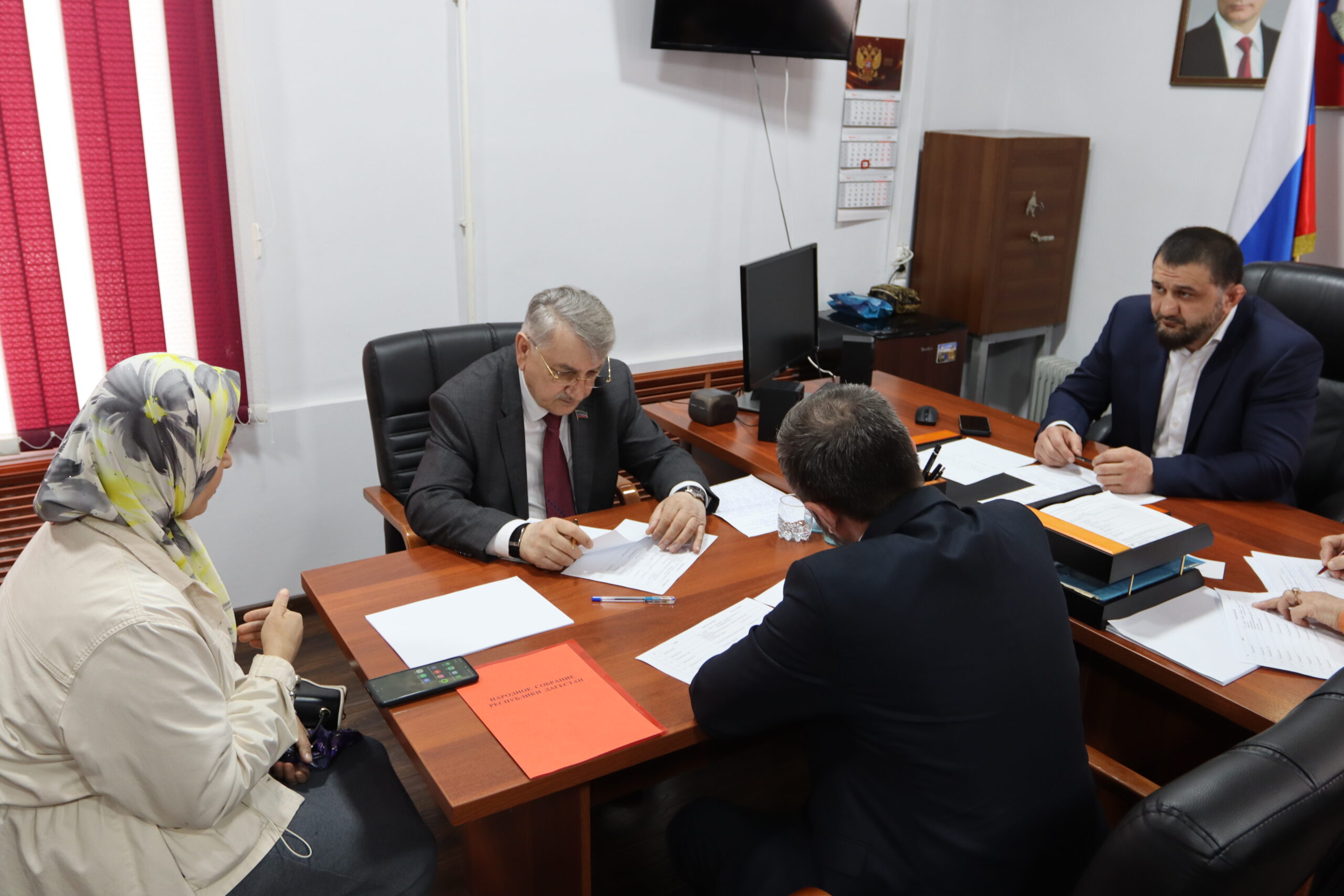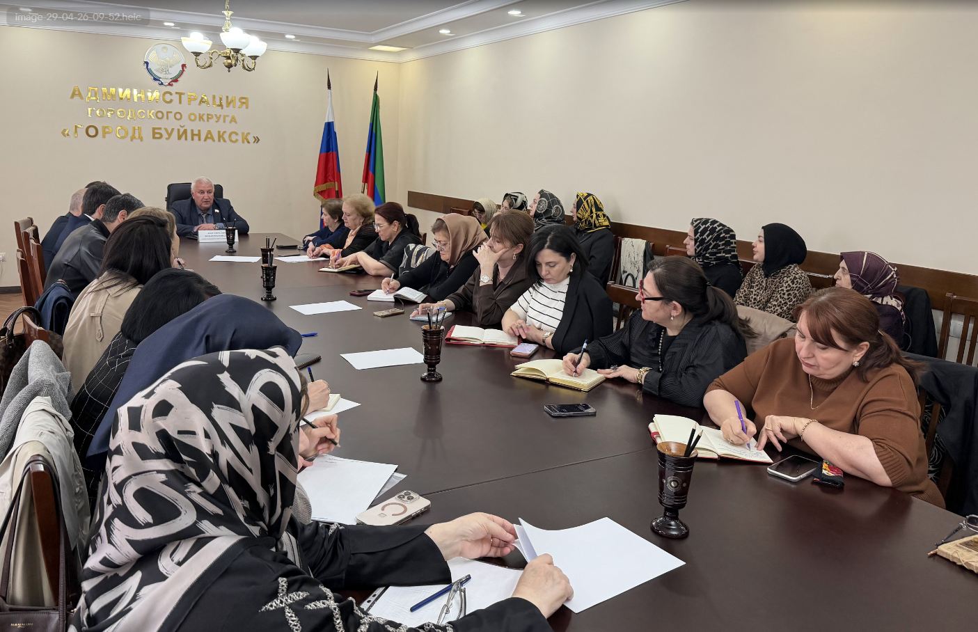 Глава города Буйнакска Махач Абдулмуслимов вручил благодарственное письмо от Главы Республики Дагестан Сергея Меликова супруге военнослужащего - участника специальной военной операции Атая Пирамматова -...